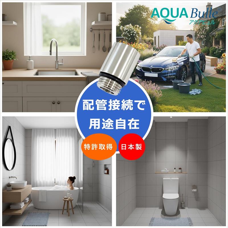 ・IN・OUTどちらでも取付OK!限られたスペースにも対応する省スペース設計。 配管につけるだけ、家中の水が生まれ変わる。洗浄・保湿・除菌を同時に叶える泡の力。